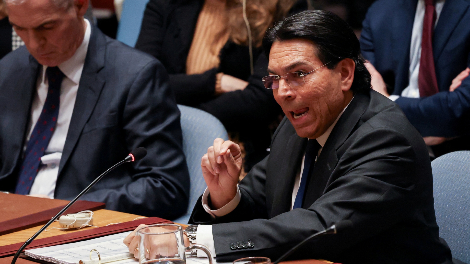 «Πρέπει να τελειώσουμε τη δουλειά. Δεν θα είναι θέμα μηνών, θα είναι εβδομάδων ή ημερών, αλλά πρέπει να συνεχίσουμε. Πρέπει να συνεχίσουμε να σφυροκοπούμε και να διαλύουμε τις δυνατότητές τους. Ακολούθως, θα χρησιμοποιήσουμε τη διπλωματία για να διασφαλίσουμε ότι δεν θα ξανακάνουν τα ίδια», είπε ο Iσραηλινός πρεσβευτής στον ΟΗΕ.