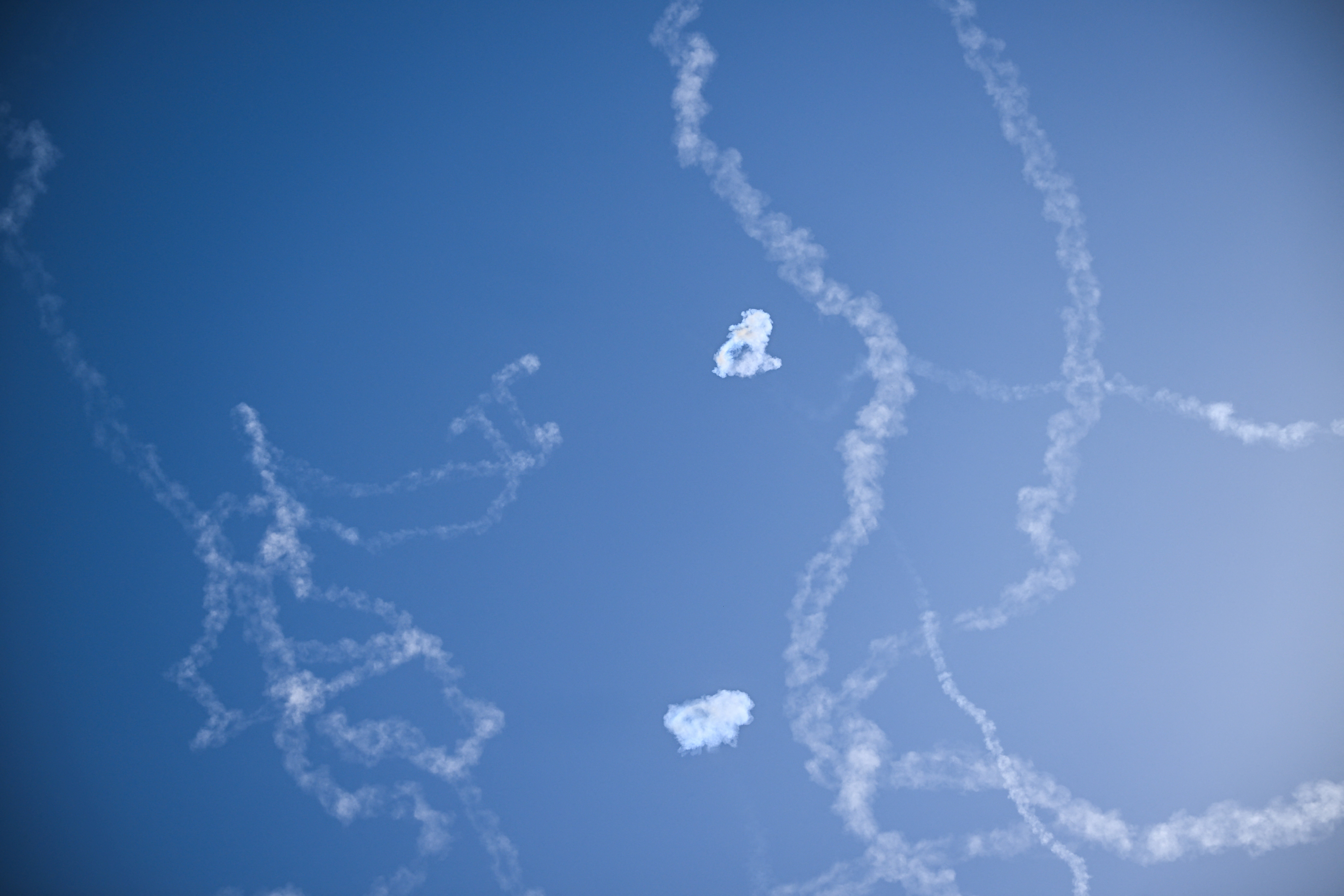 Λάμψεις των κινητήρων πυραύλων φώτισαν τον ουρανό πάνω από τη Νετάνια, βόρεια του Τελ Αβίβ, στις ακτές στη Μεσόγειο.