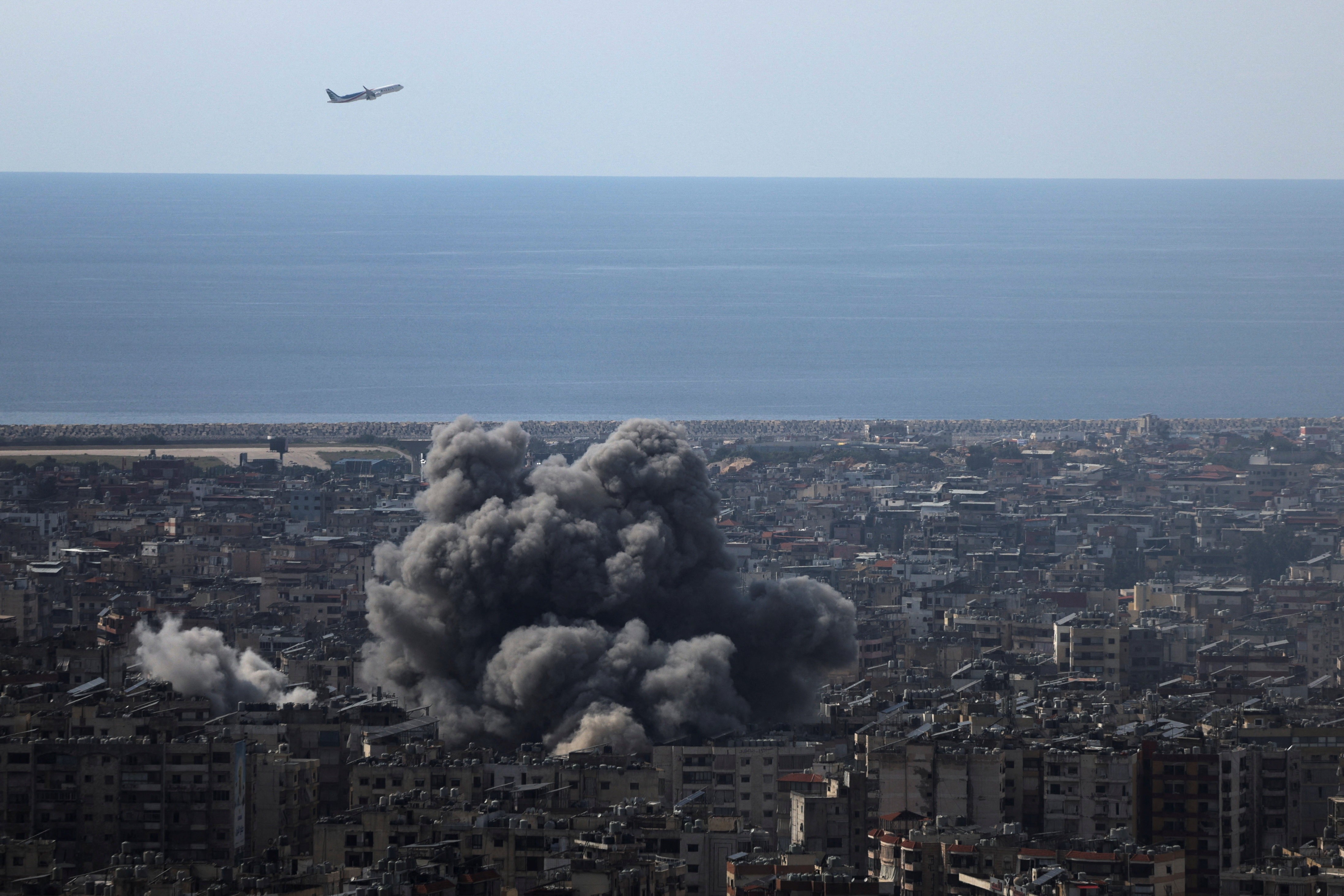 - 13:51Kαπνός μετά την ισραηλινή επιδρομή στα νότια προάστια της Βηρυτού στον Λίβανο