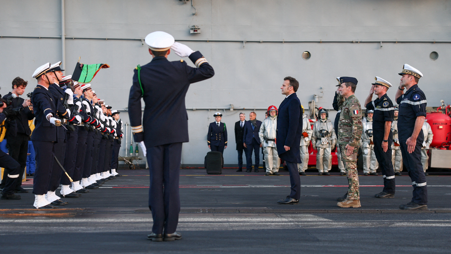 Ο Γάλλος πρόεδρος είπε επίσης ότι «αποστολή σας είναι να συμβάλετε στην εξασφάλιση της ελεύθερης ναυσιπλοΐας και της απρόσκοπτης μεταφοράς πετρελαίου και φυσικού αερίου, κάτι που είναι ιδιαίτερα σημαντικό για τα συμφέροντα της Γαλλίας».