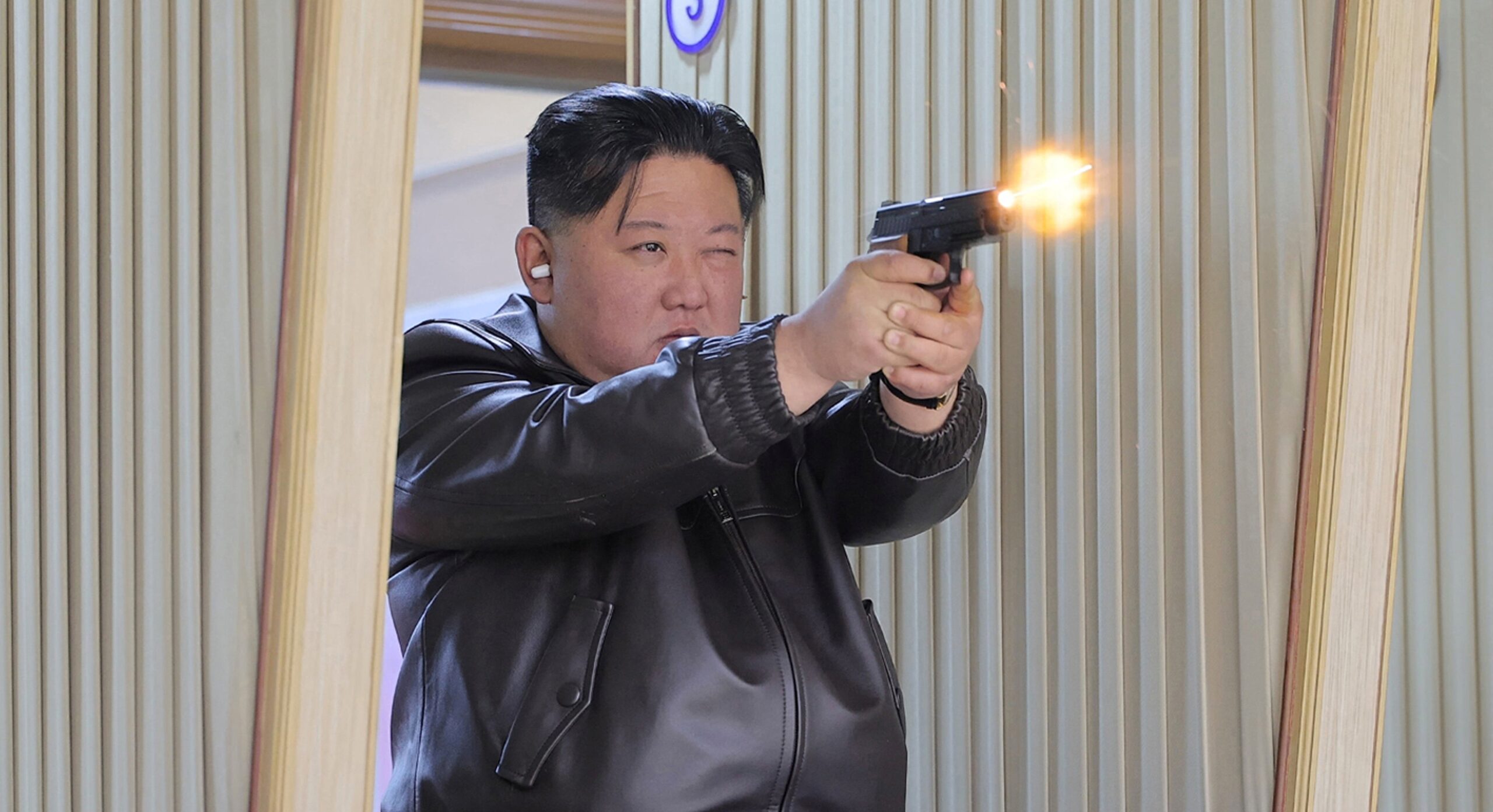Σε φωτογραφίες που έδωσε στη δημοσιότητα το επίσημο πρακτορείο ειδήσεων της χώρας (KCNA), φαίνονται ο Κιμ και η κόρη του να επιθεωρούν τις εγκαταστάσεις και στη συνέχεια να πυροβολούν με λογής όπλα. Σύμφωνα με το KCNA, ο Κιμ δοκίμασε ένα νέο πιστόλι που μπήκε πρόσφατα σε παραγωγή, χαρακτηρίζοντάς το «εξαιρετικό».