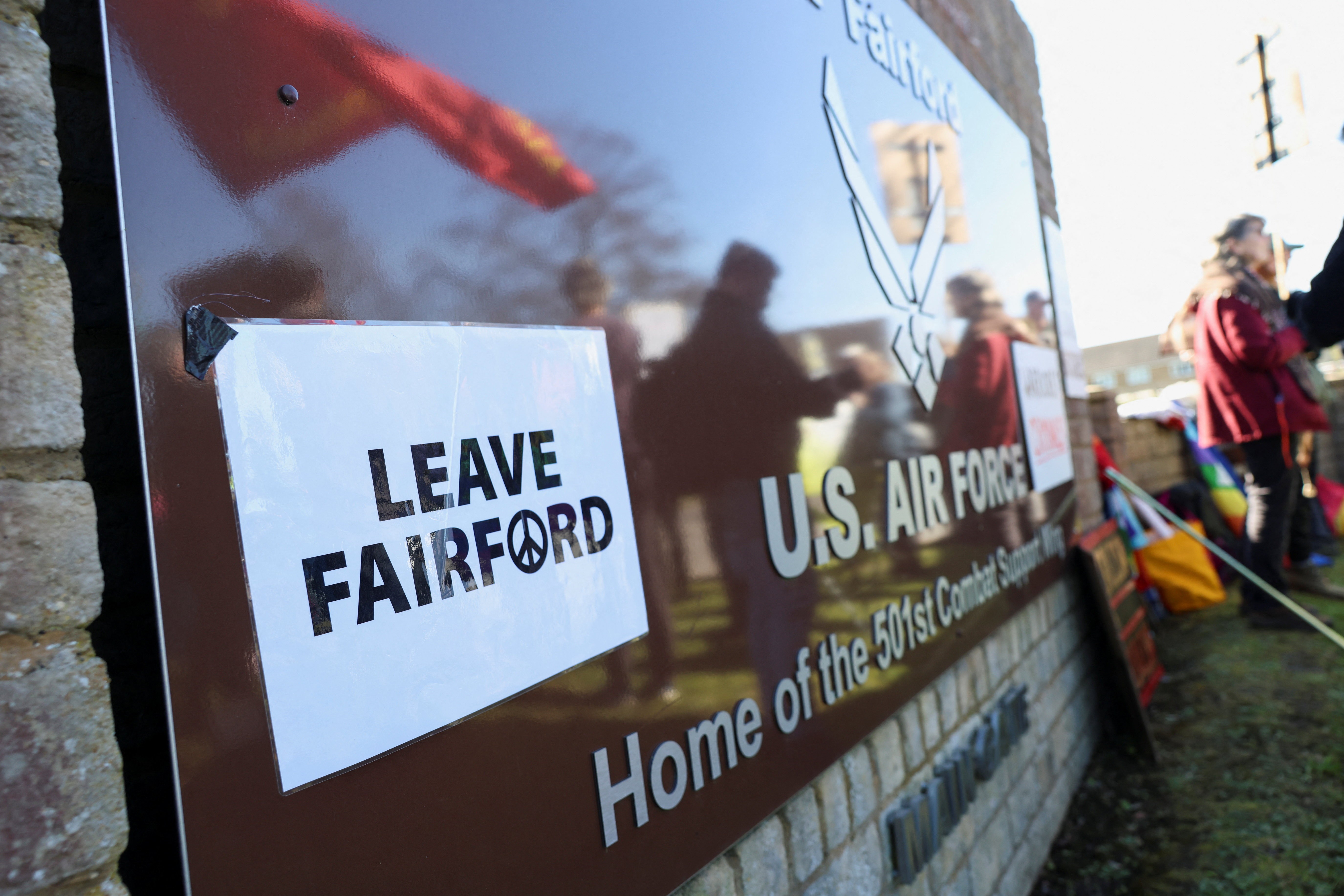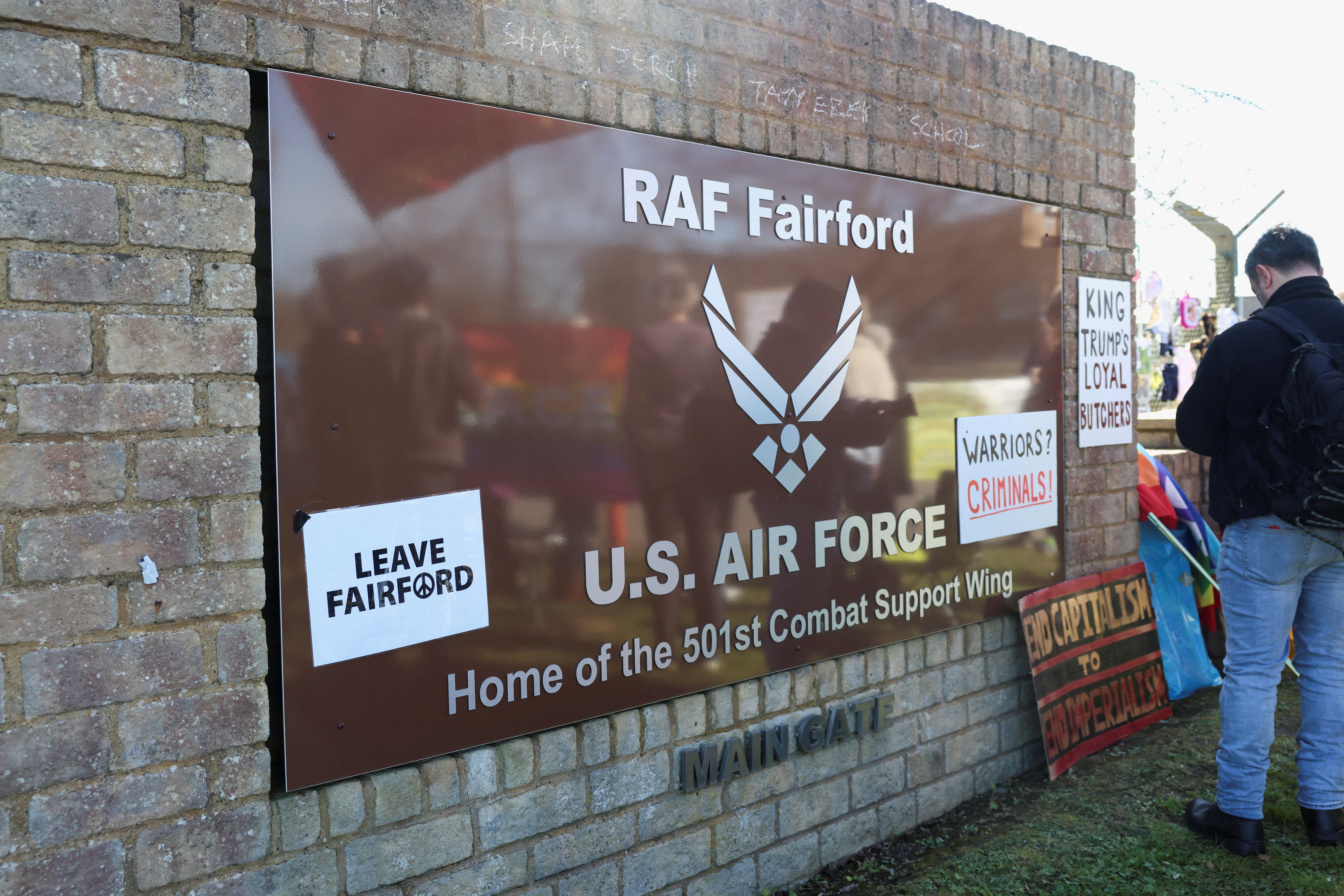 - 15:38Αντιπολεμική διαδήλωση έξω από αεροπορική βάση στη Βρετανία