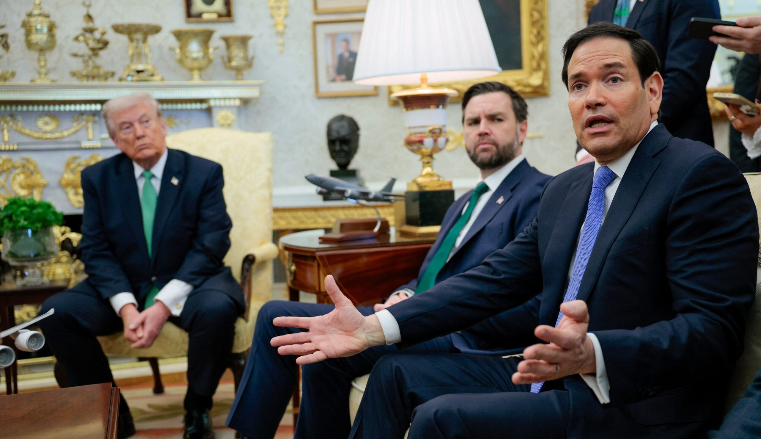 «Ολοι παρακολουθούν τη γλώσσα του σώματος που χρησιμοποιεί ο Τραμπ απέναντι στον Ρούμπιο, παρατηρώντας διαφορές σε σχέση με τον Βανς», δήλωσε ένας Ρεπουμπλικανός με στενούς δεσμούς με τον Λευκό Οίκο, υπαινισσόμενος ενδείξεις μεγαλύτερης αποδοχής του Αμερικανού ΥΠΕΞ.