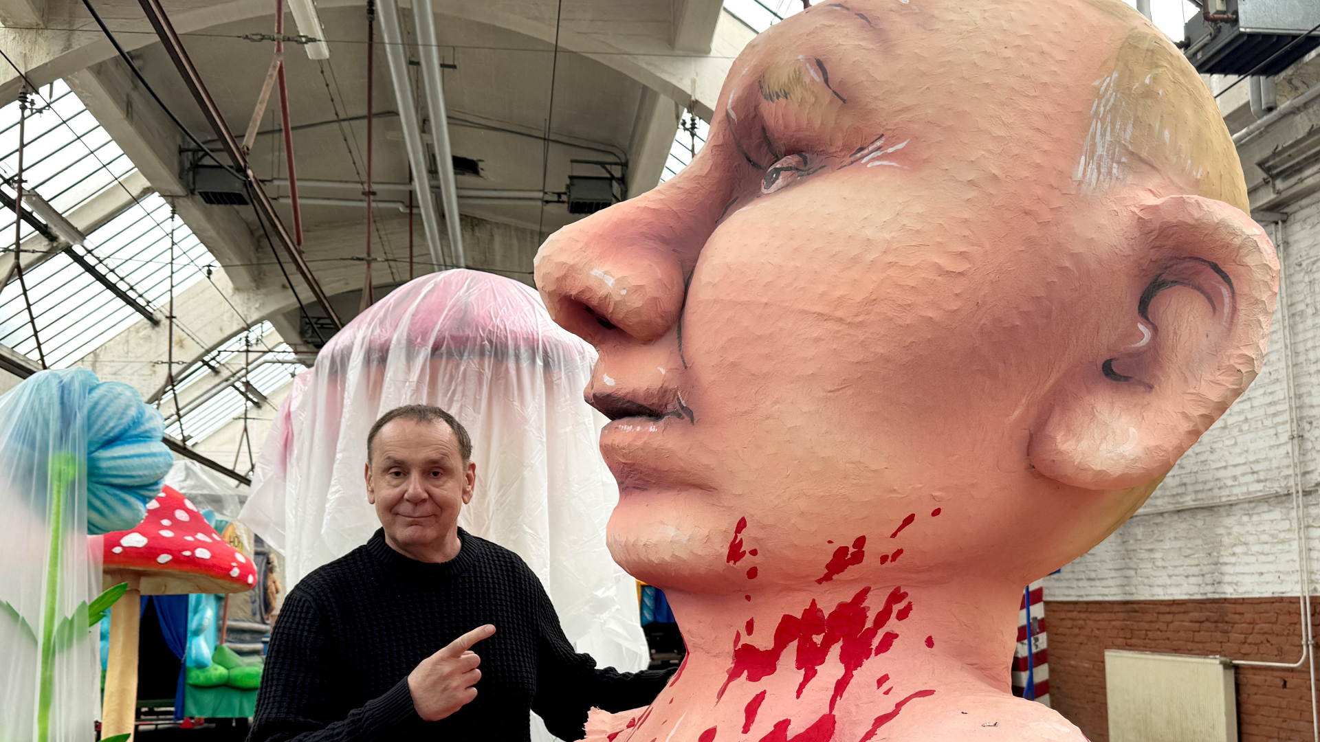 Μεταξύ άλλων δημιουργιών του Τίλι είναι ένα άρμα που απεικονίζει τον Πούτιν να είναι βουτηγμένος στο αίμα μέσα σε μια μπανιέρα που είναι χρωματισμένη εξωτερικά με το μπλε και κίτρινο χρώματα της ουκρανικής σημαίας. Eνα άλλο τον απεικόνιζε μαζί με τον πρόεδρο των ΗΠΑ Ντόναλντ Τραμπ να καταβροχθίζουν την Ευρώπη.