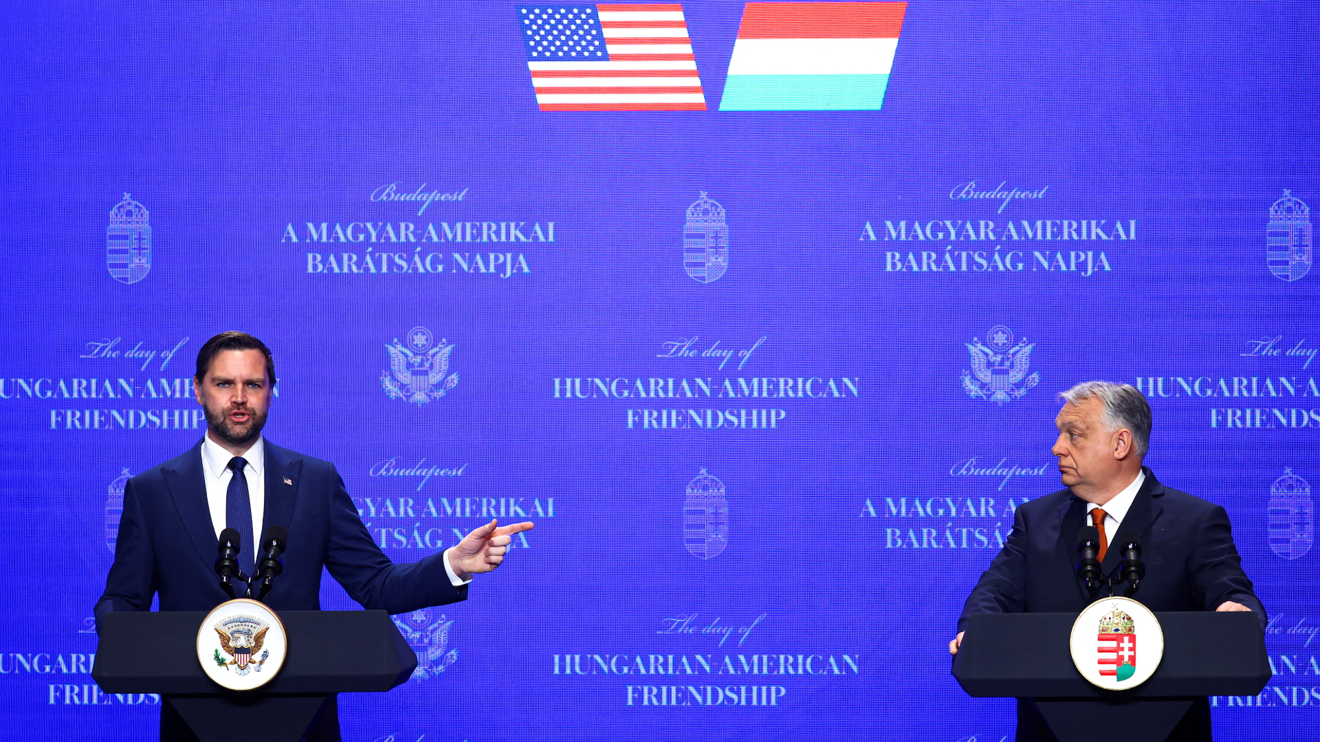«Βρίσκομαι εδώ λόγω της ηθικής συνεργασίας μεταξύ των χωρών μας. Επειδή αυτό που οι Ηνωμένες Πολιτείες και η Ουγγαρία αντιπροσωπεύουν μαζί, υπό τη διοίκηση του Βίκτορ και υπό τη διοίκηση του προέδρου Τραμπ, είναι η υπεράσπιση του δυτικού πολιτισμού», είπε σήμερα στο πλευρό του Βίκτορ Ορμπαν.