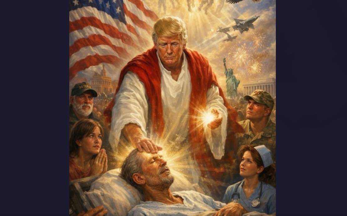 Ο Ντόναλντ Τραμπ δημοσίευσε εικόνα που δημιουργήθηκε με τεχνητή νοημοσύνη στο Truth Social την Κυριακή, όπου απεικονίζεται ο ίδιος ως Ιησούς, με θεϊκό φως να βγαίνει από τα χέρια του, ενώ θεραπεύει ασθενή σε κρεβάτι νοσοκομείου. Ενας δαίμονας από την κόλαση αιωρείται στο παρασκήνιο.