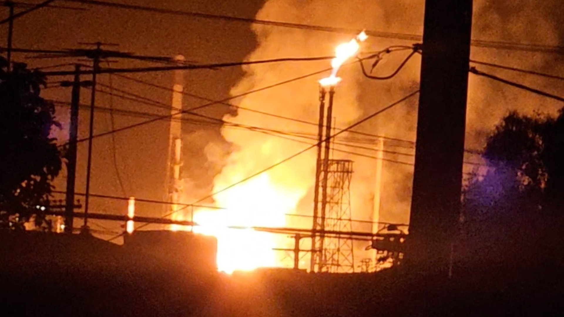 An oil refinery is engulfed in flames after an explosion in Victoria on Wednesday morning.