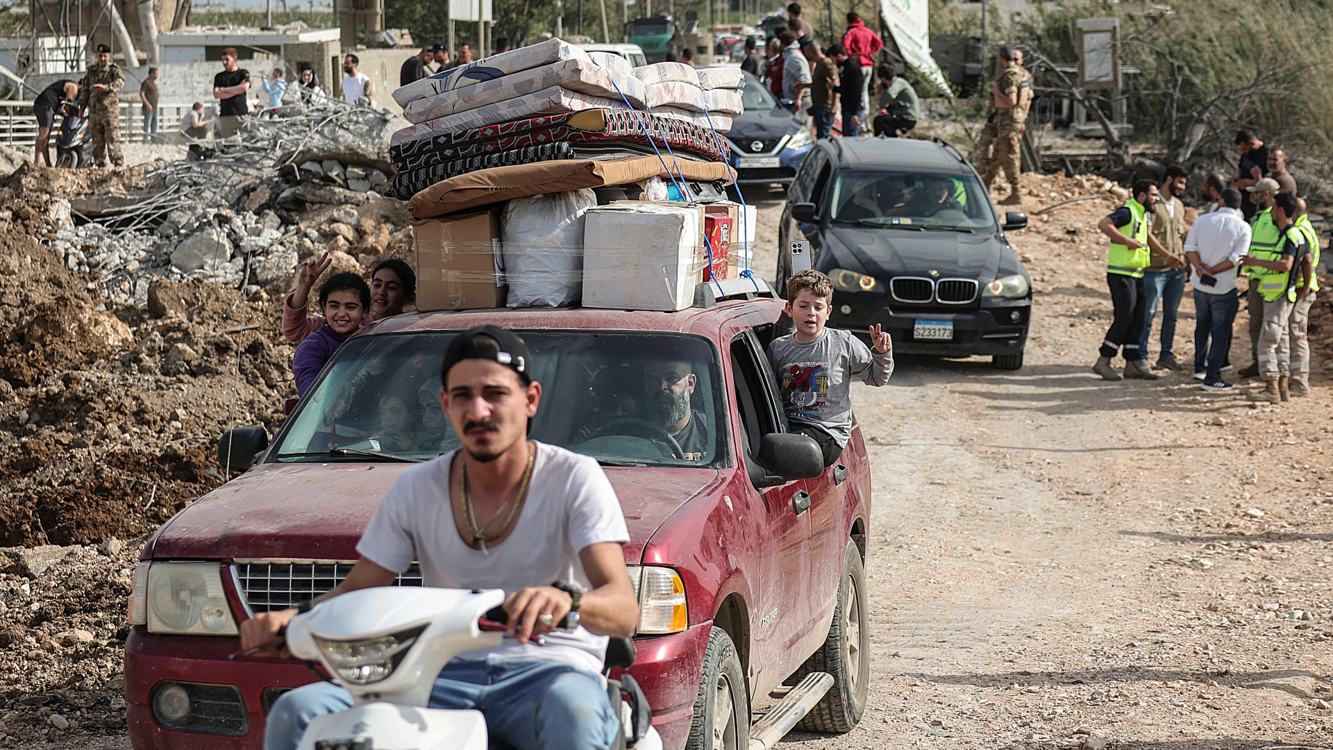 Μικρά παιδιά βγάζουν τα χέρια τους από παράθυρα αυτοκινήτων και κάνουν το σήμα της νίκης, καθώς περνούν από μια αυτοσχέδια γέφυρα που κατασκευάστηκε τη νύχτα στον ποταμό Λιτάνι, μετά την ανακοίνωση της κατάπαυσης του πυρός στον Λίβανο. Μπροστά τους όμως εκτείνονται βομβαρδισμένα ερείπια και μια σκληρή πραγματικότητα.